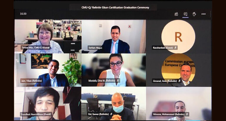 Beginning in the summer of 2020 and continuing into the fall semester, CMU-Q launched a program for select students to earn certification in Refinitiv Eikon, a professional-level global stock trading and financial analysis tool. Four students have earned the certification.…