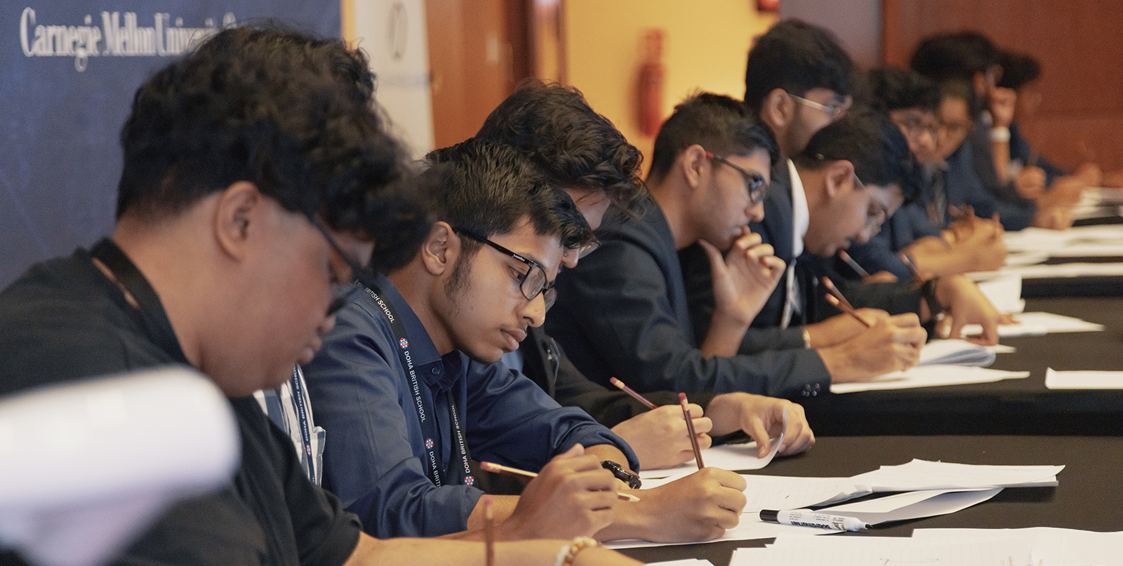 Teams of four students compete in two rounds of mathematical problem solving. A school may register only one team for the competition. The preliminary round will determine the top four teams. The top four teams advance to the final round. The venue for both events is the Carnegie Mellon University in Qatar campus in Education City.